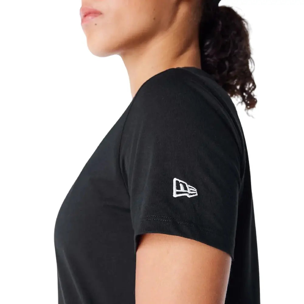 Fabriqué en 100% coton, ce T-Shirt New York Yankees Womens MLB League Essential Black T-Shirt garantit confort et respirabilité, idéal pour les journées décontractées ou sous une veste pour un look plus sophistiqué. La modèle mesure 1,75 m et porte une taille S, illustrant la coupe féminine de ce vêtement.