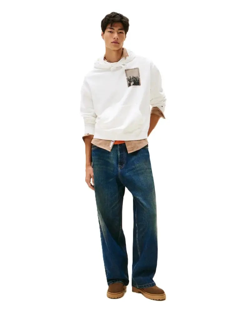 Plonge dans l’univers vintage et urbain avec le sweat à capuche Tommy Jeans 90s Back Photo Print Washed Hoody. Inspiré par les années 90, ce modèle emblématique de Tommy Hilfiger fusionne style rétro et attitude streetwear contemporaine. Son imprimé photo audacieux au dos raconte une histoire, tandis que son effet délavé apporte une touche authentique et usée, parfaite pour affirmer ton style sans compromis. - Coupe décontractée pour un confort optimal - Composition en coton doux, agréable au toucher - Teinte délavée unique pour un look vintage authentique - Capuche ajustable avec cordon pour un style adaptable - Idéal pour un look casual et urbain, facile à associer avec tes sneakers préférées - Un must-have durable, fidèle à l’esprit Tommy Jeans et à la culture streetwear actuelle.
